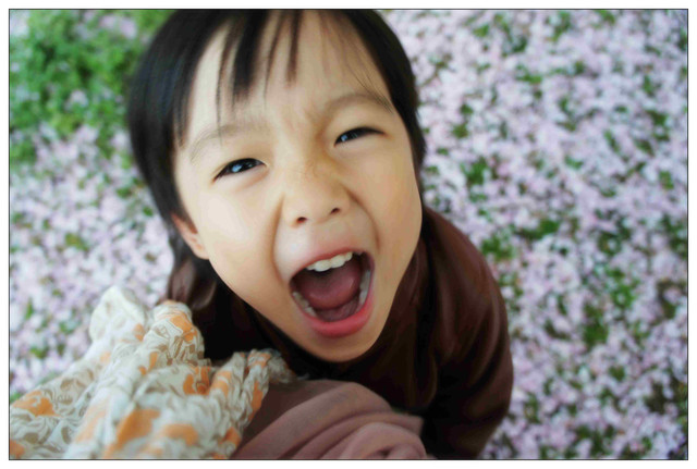 他會自己撿拾著掉落的櫻花,說sakura好漂亮ㄚ~